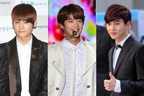 2015年是农历乙未羊年。今年年初活跃在韩国演艺圈内属羊的明星们受到了关注。正在拍摄电视剧和娱乐节目的男子组合帝国之子(ZE:A)成员朴炯植(左)和SHINEE成员珉豪(中)、EXO-K队长金俊勉(右)都是1991年出生属羊的“小鲜肉”。