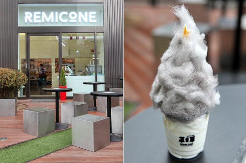 东大门“斗塔”的1层有一家叫做“REMICONE”的店。店内一个俗称“乌云冰淇淋”(6,100韩元)的甜品已被很多国内外网民知晓。这是一杯软冰淇淋顶着乌云模样棉花糖的甜品。棉花糖和冰淇淋可以分开来吃,搅拌后也别有一番风味。