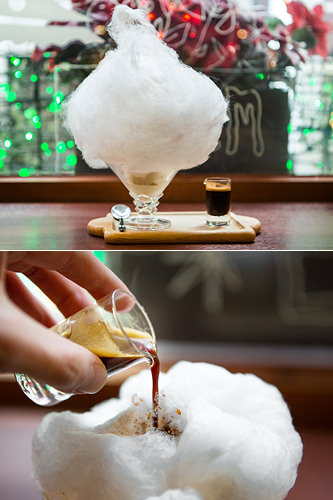 年轻人经常出没的弘大或新村地区有一些酒家,也在主推棉花糖鸡尾酒。鸡尾酒的酒精浓度不高,再加上棉花糖的甜味,对女生们有着无法抗拒的魅力。