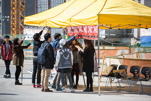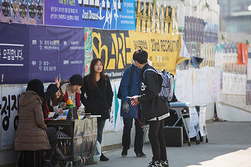 大学里恋爱萌生的地方当属社团活动了。校园里正设置着帐篷准备招揽新入社员呢。在韩国大学生中具有人气的社团活动是有利于就业的志愿者活动或是能学到就业小窍门的社团等比较现实的社团活动。