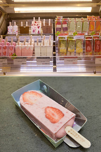 打着“健康起来吧”口号的“BRICK POP”是韩国首个将新鲜水果冰在冰棍里的冰淇淋店。不含任何化学添加物,使用当季新鲜的水果,将其切成一半直接冰在冰棍儿里。不仅健康美味,而且外形赏心悦目。最近大热的有草莓牛奶和芒果口味,价格在3,900~4,500韩元之间,在新世界百货店、现代百货店以及SSG食品超市均有销售。