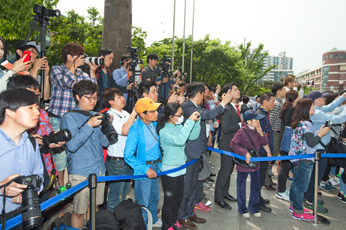 在首尔东部,地铁2号线圣水站附近步行5分钟就能到达的“易买得”超市门口人潮拥挤。许多人都端着长枪大炮般的摄像机,这是为什么呢?