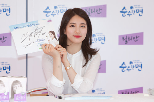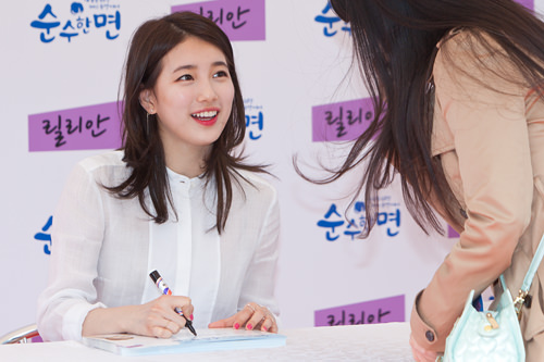 被称为“韩国国民妹妹”的秀智也拥有众多女性粉丝。始终保持着微笑的秀智亲切地与粉丝交流,能拿到她亲笔签名的粉丝掩饰不住满心的欢喜。