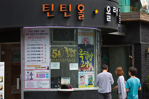 很多韩国的年轻人都很喜欢近距离地看小话剧,这也是很多情侣们约会时一个充满情趣的选择。因此大学路也称得上是一个约会的好去处哦!