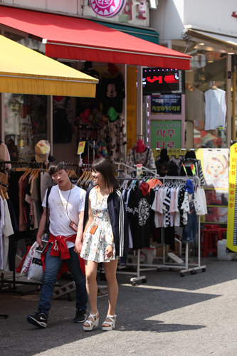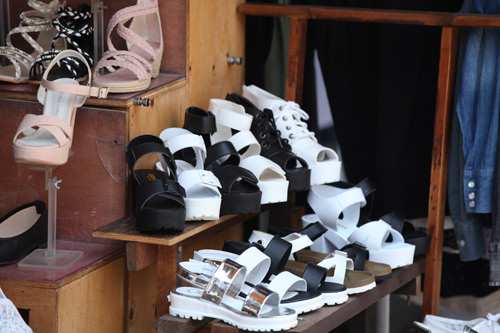 比较常见的是底子厚厚的凉鞋。无论是弘大的街头小摊还是服装店的橱窗内,都可以看到这类凉鞋。