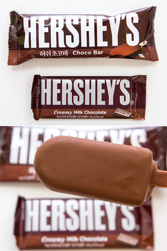 好时(HERSHEY`S)巧克力大家一定很熟悉,但这伪装成巧克力的冰淇淋(1,800韩元)可够新鲜吧!很多人第一次在便利店的雪糕柜内见到它甚至感觉有些不可思议。其实它是由一层又厚又脆的巧克力裹着的巧克力味冰棍。