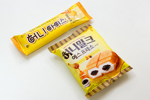 海太蜂蜜黄油薯片令整个韩国刮起了蜂蜜黄油的飓风。今年夏季,蜂蜜黄油继续驰骋冰棍界。除了蜂蜜黄油的元祖海太公司(图上,600韩元)以外,乐天等公司也纷纷推出蜂蜜口味冰棍(图下,2,000韩元)。