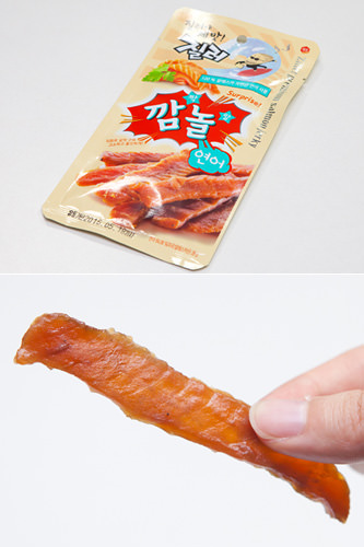 对三文鱼的关注也衍生了一个新品——三文鱼鱼干“吓一跳”(4,200韩元)。韩国食品界正在刮着这股“超级食物”新潮。来韩国旅游时,不妨尝尝韩国的超级食物吧。