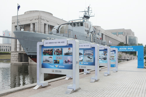 被称为“最前线记录者”的户外展示场地内真实地展现着战士们训练的姿态。从130多张照片里可以看出英勇的海、陆、空军战士们正在为民族的和平而做贡献。
