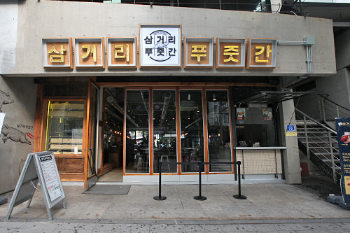 “猪蹄的明秀”算是弘大比较有名的一家老店了。本店可以无限续的猪蹄组合套餐非常受欢迎,套餐中含酱味、辣味、凉菜猪蹄和菜包肉,价格为每人19,800韩元。