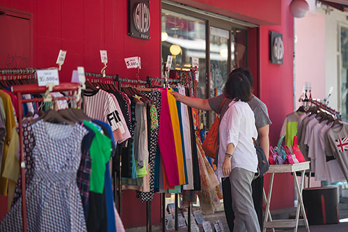 在下雨时享受购物乐趣的人们也不少。梨泰院虽然以汇集了各国美食而闻名,其实往胡同里走一下的话时尚小店也不少哦。