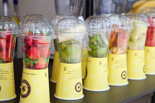 鲜榨果汁专卖店“MY JUICE”很特别,它不仅让顾客按自己的喜好选择水果(不多于3种),榨出来的新鲜果汁还帮你装进漂亮的透明瓶子里带走,果汁价格从4,500韩元起(提供冷饮专用随行杯,耐热杯需另付费),在弘大等地都有分店。