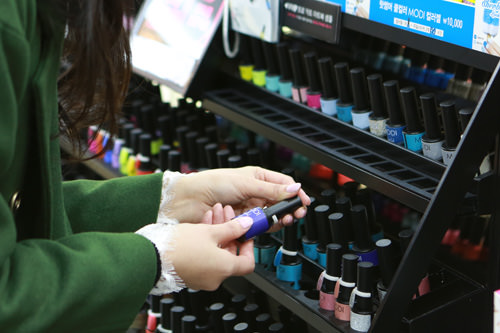 美甲贴纸从夏天开始一直很流行。除了售卖14种丰富色彩的谜尚(MISSHA)(如图,3,000韩元)以外,托尼魅力(7色,4,000韩元)和自然共和国(Nature Republic)(6色,4,000韩元)也都有美甲贴纸。美甲贴纸可以轻易地取下来,很方便。