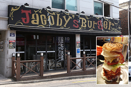 高达20厘米的巨型汉堡包见过没?这是解放村有名的手制汉堡店“Jacoby’s Burger”的招牌料理,号称“内脏破坏王”(29,000韩元)!荷包蛋、2片厚厚的牛肉饼、培根、薯饼、芝士等,涵括了店主能想到的高热量食材,3个人吃都不嫌多,大肚皮的朋友可以挑战一下。