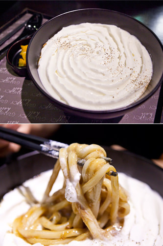 “鲜奶油咖喱乌冬”(14,000韩元)是最近爆红韩国吃货圈的黑暗料理,高热量的鲜奶油和咖喱乌冬的组合,你能想象是什么味道吗?刚端上桌时只见雪白的奶油,不见乌冬,扒开奶油,下面藏着咖喱乌冬。醇香的奶油和微辣的咖喱,,吃一口真的绝赞!在明洞新世界百货店新馆11层的GRAMERCY HALL能品尝到。