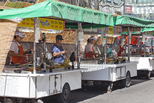 街边小摊虽然也已经支了起来,但看起来总显得有些无精打采,昨晚在沸腾的人群中经营到很晚吧。