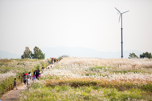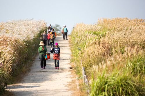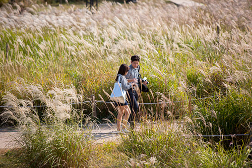 “首尔紫芒节”将在2015年10月10日(周六)~10月17日(周六)举行,为期8天。风吹过大片紫芒,紫芒就像金色的波浪一起一伏,非常美丽。虽然是庆典的前一天,但仍有很多人在公园里漫步。