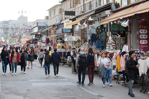 短裙是韩国女性一年四季的必备品,学校的女生校服是裙装,上班族也会不分季节穿裙装。不难发现浅色的丝袜已渐渐不见踪影,而黑色丝袜正逐渐占领首尔大街。