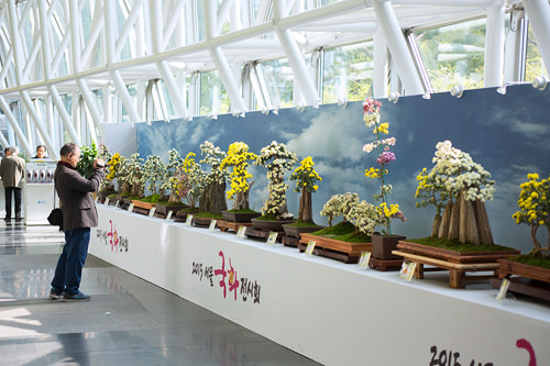 除此以外,首尔市厅的大厅里还展示了200多盆菊花盆栽,这是首尔市菊花盆栽班学生们与咸平郡盆栽专家的作品。