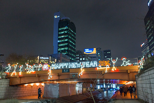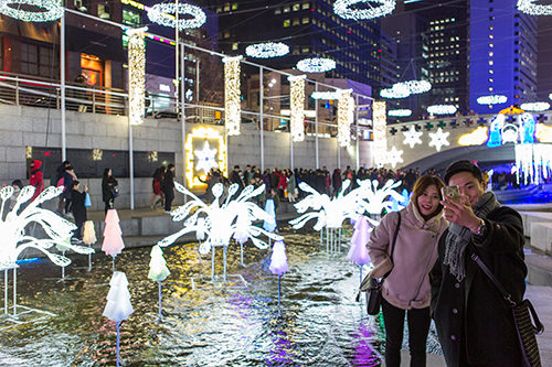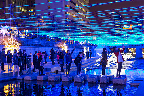 韩国一年四季精彩庆典活动不断。现在,从清溪广场至长通桥一带长达1.5km的河流两岸正如火如荼地举办绚丽的“2015年首尔圣诞节庆典”。