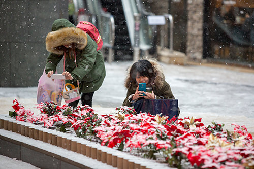 这场大雪是2016年的第一场雪,街上的人们纷纷拿起手机为这场雪留下了纪念。