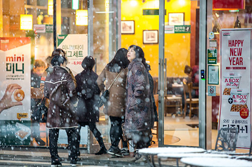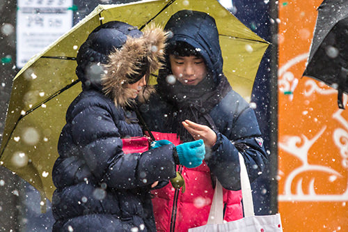 首尔地区今天的最低气温将降至零下8度,一场突如其来的大雪将整个城市覆盖。