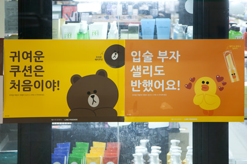上个月,韩国化妆品牌“谜尚(MISSHA)”和“LINE”合作推出的化妆品炙手可热,部分卖场一度售罄。印有Cony、Brown和Sally形象的可爱包装俘获了无数少女心。