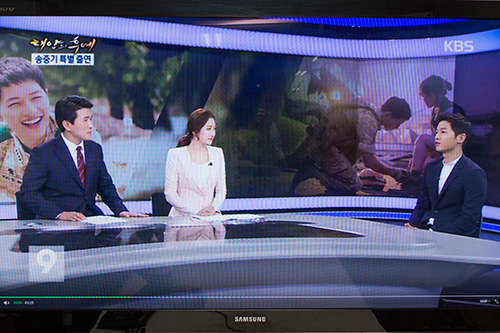 KBS电视台的《9点新闻》是一档收视率很高的新闻节目。随着电视剧对韩流领域发展的影响力越来越大,宋仲基以第一位受邀演员的身份坐在了直播间里。