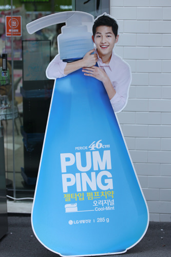 宋仲基的代言也在一夜暴增。明洞的一家生活用品店将宋仲基代言的“LG生活”牙膏立牌立在店前,吸引不少顾客到店内购买相同的产品。