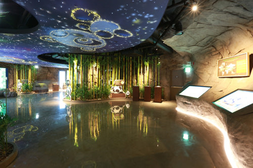爱宝乐园为爱宝、乐宝为这对熊猫修建了一个温暖的家。科技与大自然相结合的“熊猫乐园” 利用尖端科技展示着大熊猫生活空间。