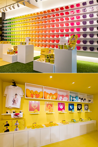 “秀贤C家”一共有2层,1层是Lemona品牌体验区。大家所熟悉的“来韩国必买的维C粉”是嫩黄色心形铁盒包装,但这里则汇聚了赤、橙、绿、蓝、紫等七色彩盒。除此以外,秀贤T恤、抱枕、袜子、马克杯等周边产品丰富,买一件作为伴手礼很不错哦!