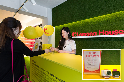快闪店还举办各种酬宾活动,只要来店就能获赠1包维C粉或维他命500饮料。韩国3大电信之一的“LG U+”在快闪店内设有Wi-Fi路由器,方便您使用网络,而且在韩巢租赁“LG U+”Wi-Fi顾客可获赠印有金秀贤照片的湿巾。