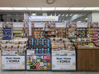 在收银台前有特别为海外游客准备的"K-FOOD柜台",人气零食一目了然。如果想给朋友带一些韩国特色伴手礼却没有好的选择,不如就去K-FOOD柜台找找灵感哦~!超市中还有多种提供试吃的促销柜台,可以品尝到各种韩国泡菜和小吃。