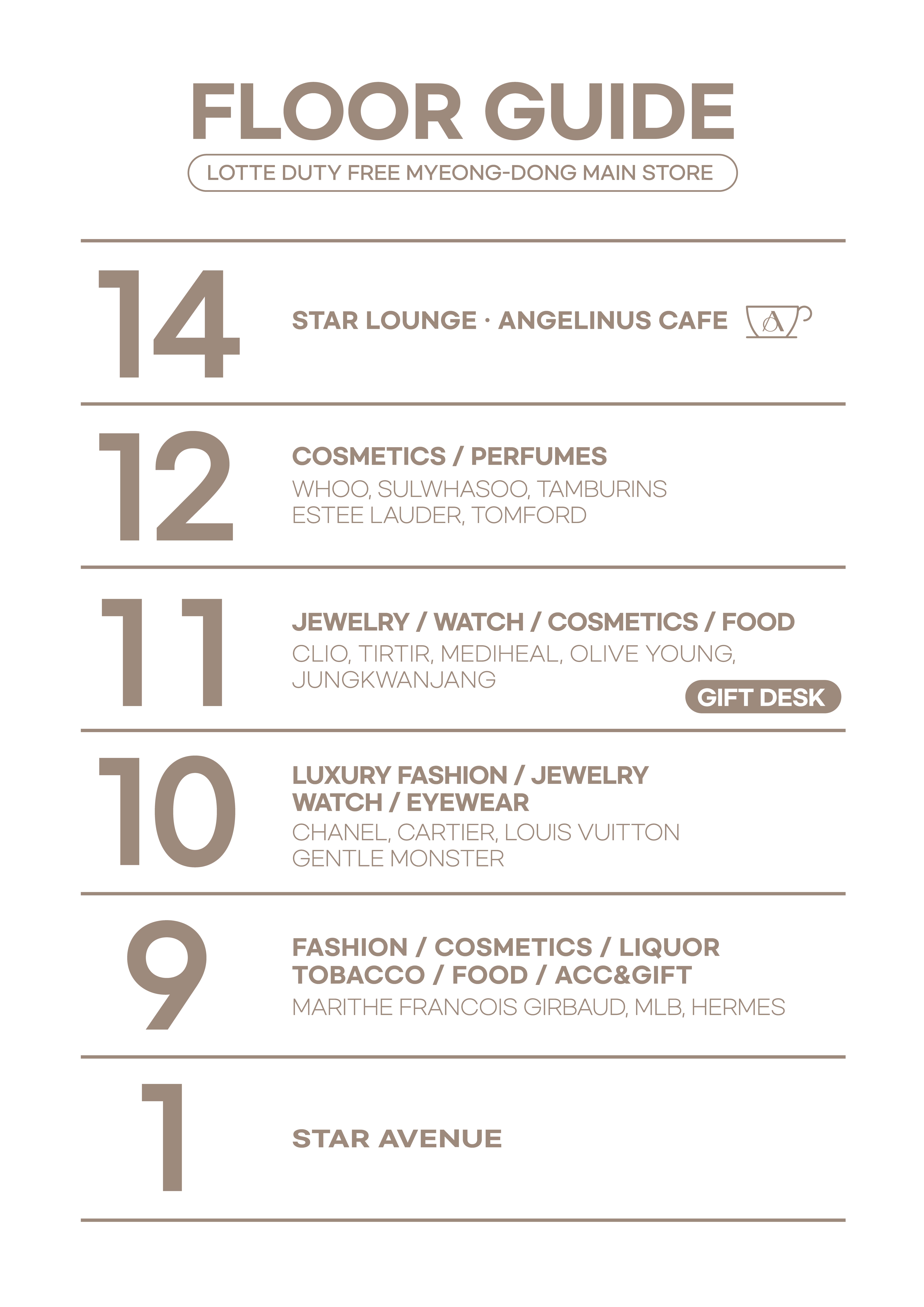 9层的中央区域是以韩国本土化妆品为主的美妆专区,外围区域则设有海外高端名品品牌、时尚服饰品牌,以及烟酒、电子产品等专区。