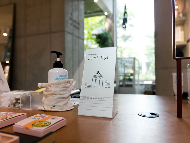 位于圣水洞,一次可试用30多个韩妆品牌商品的爱茉莉化妆品体验馆