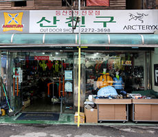 市场从东大门起向西延伸,商铺鳞次栉比,而“登山用品商街”就属于其中的一部分,它处于钟路5街站的5号及6号出口之间。登山用品商街的起源可以追溯到20世纪60年代,东大门市场形成后,登山用品店相继出现。过去,这里的登山用品专卖店有40~50家之多,发展到现在只有20家,近年来很多国内外的登山品牌制造商纷纷在这里开设店铺。这里依旧是登山用品的一大购物中心。“登山用品商街”有各种各样的登山配备用品,只是在其中随便逛逛,也能发现很多有趣的东西。 |