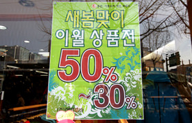 ◀ 换季之际,店内会贴出“过季商品(去年的库存)折扣”的告示 |