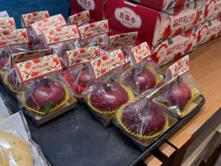 位于KTX东大邱站内,造型可爱的苹果面包非常有人气