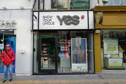 “Yes”是在韩国年轻女孩中人气很高的内衣品牌。“Yes 新村店”位于拥有延世大学、西江大学等著名高校的新村,这里不仅是韩国大学生活跃的街区,也是留学生们经常结伴前往游玩的地方。本品牌的主要顾客群为20岁左右的少女,当然喜爱浪漫可爱系列的女人不论年龄如何都可以在这里找到令自己满意的一款。本店的内衣风格甜蜜可爱,设计时尚,价格亲民。店内摆挂着五彩缤纷的内衣产品,按休闲系列、黑色系列、情侣装系列、男士系列等分类陈列,方便顾客找到自己想要的那件。其中男女相配的情侣内衣算是本店最吸引人的地方了。