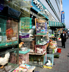 令人担忧的是这边宠物市场的自然环境。虽说市场前就有人工河清溪川,但也不是很干净。许多鸟被放在小小的鸟笼里饲养着,小狗和兔子也在小笼子里,或者直接被放在路边上。这里的店铺比较密集,小动物十分容易染病。为了照看小生命,店家可谓是一点儿也不能松懈。也许仅仅是一个小问题,但对小动物来说却是非常严重的。所以在购买宠物的时候,您也一定要多加注意哦。 |
