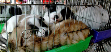 兔子、仓鼠等小动物比较显眼。兔子的种类繁多,有专门的兔子批发市场,价格便宜。兔子的价格大约是10,000韩元,仓鼠2,000韩元,刺猬30,000韩元。除了宠物,还出售饲养用具哦。而卖狗和猫的店相对比较少。 |