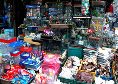 这里的鸟禽店也很多,狭窄的店内摆满了各种鸟笼。鸡的种类比较多,还有鹦哥、禾雀、鸽子等小鸟,就连野鸡等珍稀品种都有哦。除此之外,鸟笼和饲料也有售哦。 |