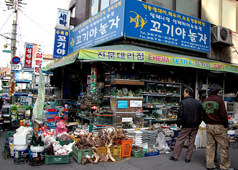 东大门市场内商品琳琅满目,衣服和鞋子等种类繁多。而在这个大市场的一角,还有个宠物街,出售小狗、仓鼠、兔子、鸟类、观赏鱼和昆虫等。该宠物市场位于清溪川旁边,共有约40家店,已有30年历史。踏入宠物街,感觉就像走在水族馆或者动物园一样。狗和猫一般都是在忠武路爱犬街卖,但这里的种类更多。虽说带宠物回中国是不可能的,但是在宠物市场散散步也不错哦。 ※照片于采访时拍摄。 |