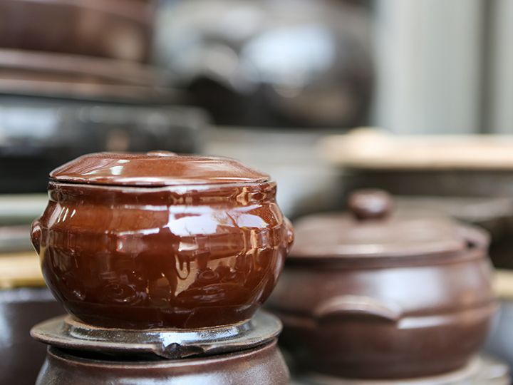 店门口摆得整整齐齐的砂锅
