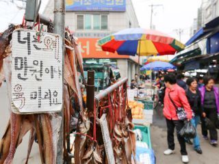 韩国传统市场“富平市场”位于仁川广域市东北部的富平区,是一个首都圈大型传统市场。令人印象深刻的是它不同于现代化的传统市场,没有对传统市场内的各个农产品、水产品、加工产品、生活杂货等商家进行分类,而是保持着过去原来的样子。虽然没有进行商家分类的市场有点混乱,但它原汁原味地展现出韩国传统日常,来韩国旅游时,逛一逛“富平市场”将会是了解韩国传统的好机会。