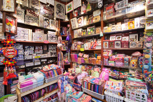 店内一角堆放着许多韩国传统纪念品。正好可以用珠宝盒和传统布袋来装宝石饰品。此外,还有许多小镜子、装饰品等。