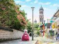 “全州殿洞天主教堂”是为了纪念韩国殉教者于1914年修建的天主教堂,位于以韩屋村闻名遐迩的全州市,是韩国西南部规模最大、最美丽的西洋建筑。红色的砖墙、洋葱头的拱顶,结合了罗马与拜占庭风格的建筑无论从哪个角度看都闪耀着神圣美丽的光环,被誉为韩国最美的西洋式建筑。在天主教堂对面的“庆基殿”可以拍摄到传统韩屋与西洋建筑和谐一体的照片。除了外观以外,还可以到教堂内部参观,不过当有信徒在祈祷或进行弥撒时,请不要喧哗。全州殿洞天主教堂也常在韩剧、韩国电影中出现,是一处著名的观光景点。