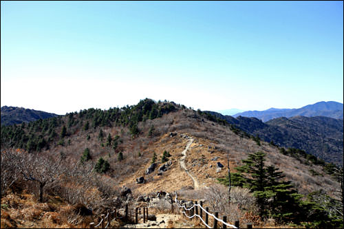 横跨全罗南道等韩国南部三道的智异山国立公园是1967年被指定的韩国最早的国立公园,占地足有440,485平方千米。智异山国立公园是韩国最大的国立公园,相当于首尔北汉山的5倍大小。不仅有著名的韩国八景,5大名山,还有天王峰,老姑坛,般若峰等85个奇峻的山峰。而且春天有杜鹃花与樱花漫山遍野,夏日有青翠瀑布与江水潺潺,秋天枫叶与芦苇相映成趣,冬季皑皑白雪更显大自然之神秘。智异山公园,一年四季,各有其景,美不胜收。智异山公园约有20多个登山路线,从老姑坛到天王峰长25.5千米的路程,是韩国最长的徒步路线。