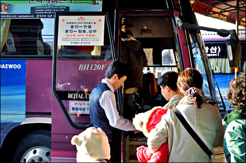 在东首尔综合巴士客运站乘坐高速巴士,到达白武洞站,约3小时30分钟。从白武洞站步行至登山口,约5分钟。