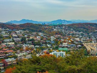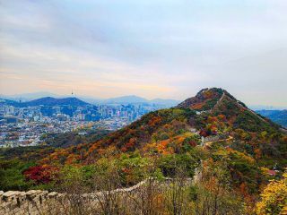 北岳山巍然耸立于首尔的北部,构成了在首尔极具代表性的古宫景福宫以及总统府青瓦台的背景。四周被群山环绕,又有汉江自东向西贯穿其中,首尔的地形在风水思想里简直堪称绝妙。北岳山作为首尔北侧群山的主峰,默默守护着首尔。北岳山一带作为特定警备区域,近40年间一般出入都受到管制。现在管制放松,沿着登山路放置木制楼梯形成了专门的散步路。站在山上,不仅可以将首尔市内风景尽收眼底,同时还能欣赏到城郭等历史建筑和不同种类的植物。